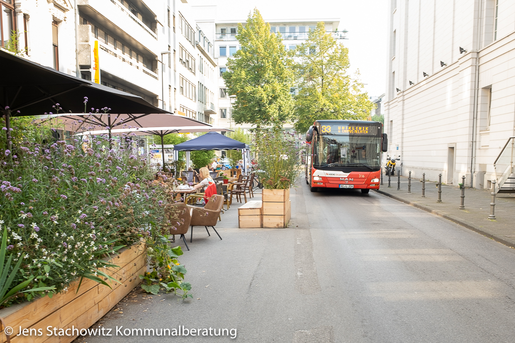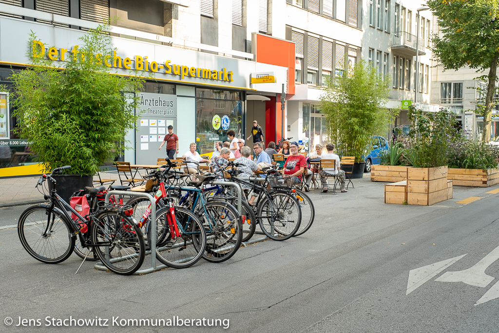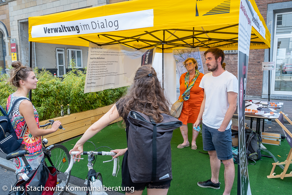 Seit vielen Jahren ist die Stadt Aachen im Dialog über die Veränderungen der Mobilitätsangebote und des Mobilitätsverhaltens. Im August 2020 hat der Rat der Stadt ein umfassendes Investitionsprogramm beschlossen, das dazu dient, die Mobilitätswende in Aachen zu gestalten. Zum Auftakt der Europäsischen Mobilitätswoche Mitte September moderierte ich einen Livestream, bei dem die Leiterin des Fachbereichs Stadtentwicklung, -planung und Mobilitätsinfrastruktur der Stadt Aachen, einige ihrer Mitarbeiter*innen und der Oberbürgermeister dieses Projekt „Mobilitätswende“ präsentieren konnten (Link zur Aufzeichnung). Anlass und ein Hauptgegenstand des Abends war das Reallabor Theaterplatz, bei dem Flächen rund um das Theater temporär dem Autoverkehr entzogen und dem Aufenhalt zugeschrieben wurden. Das Projekt wurde in kurzen Videos und Wortbeiträgen erläutert. Des Weiteren waren der Radverkehr, der Fußverkehr, der Öffentliche Nahverkehr, die elektrischen Antriebe und auch das Parken Themen einzelner Runden. Fragesteller*innen und Kommetator*innen kamen über einen Rückmeldekanal zu Wort.